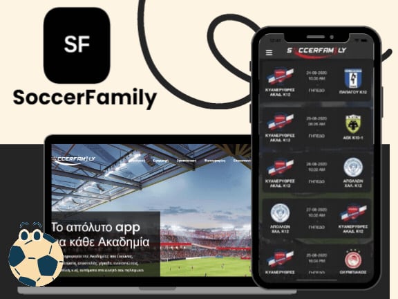 con image SoccerFamily About this app Features and automatic push notifications on your mobile phones for: • All next matches of your soccer Academy (including online field maps, match date and time, team logos, team’s players participation, etc.). •